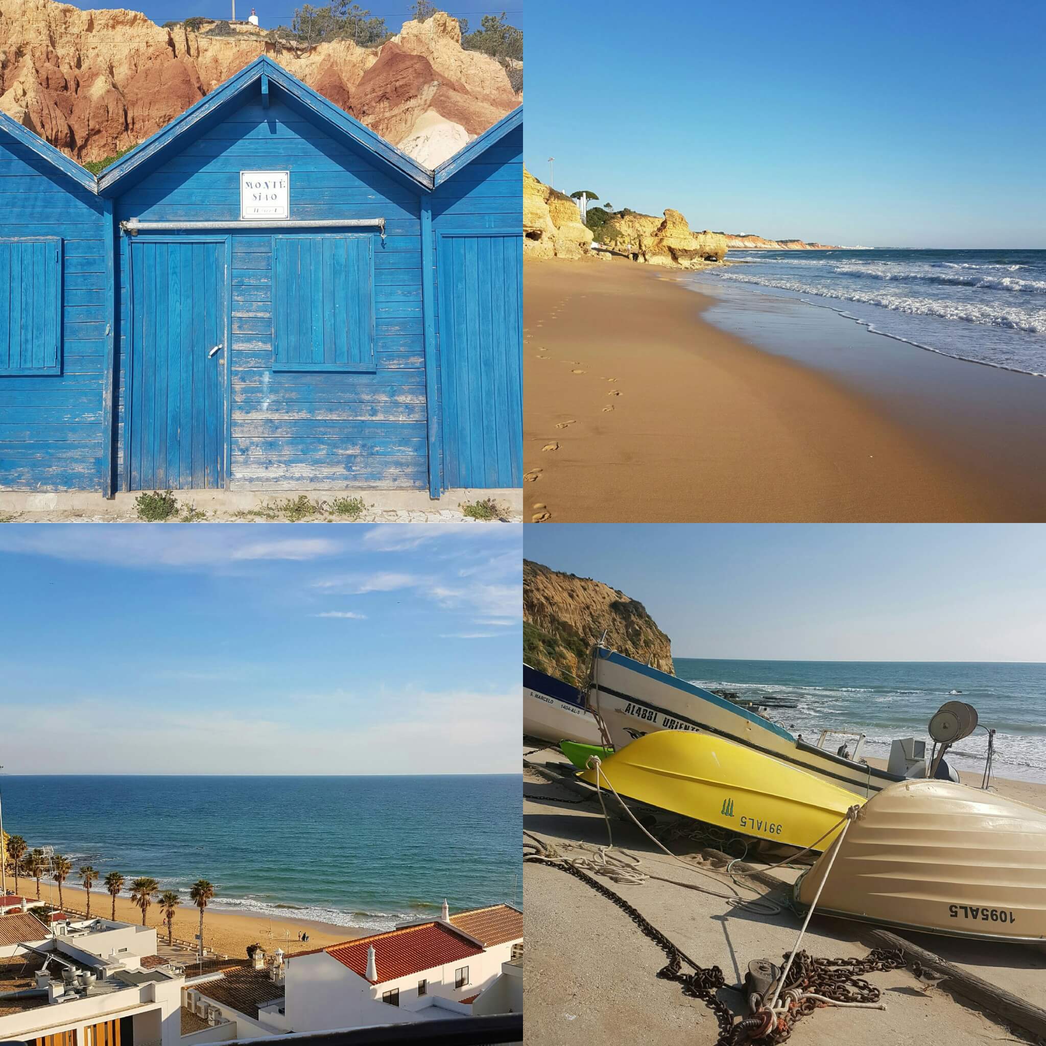 Nou ja winter, het was nog steeds 17 graden, dus midden op de dag kon je prima met blote benen en armen op het balkon zitten waar nauwelijks wind stond. Het enige dat ik miste was een speeltuintje, maar van meer ervaren Algarve gangers heb ik begrepen dat je die daar sowieso nauwelijks ziet. Vanaf het appartement loop je in een paar minuten over de steile trappen naar een prachtig strand met wat barretjes en winkeltjes. In het dorp zitten op loopafstand supermarkten, winkels en restaurants (daarover later meer).
