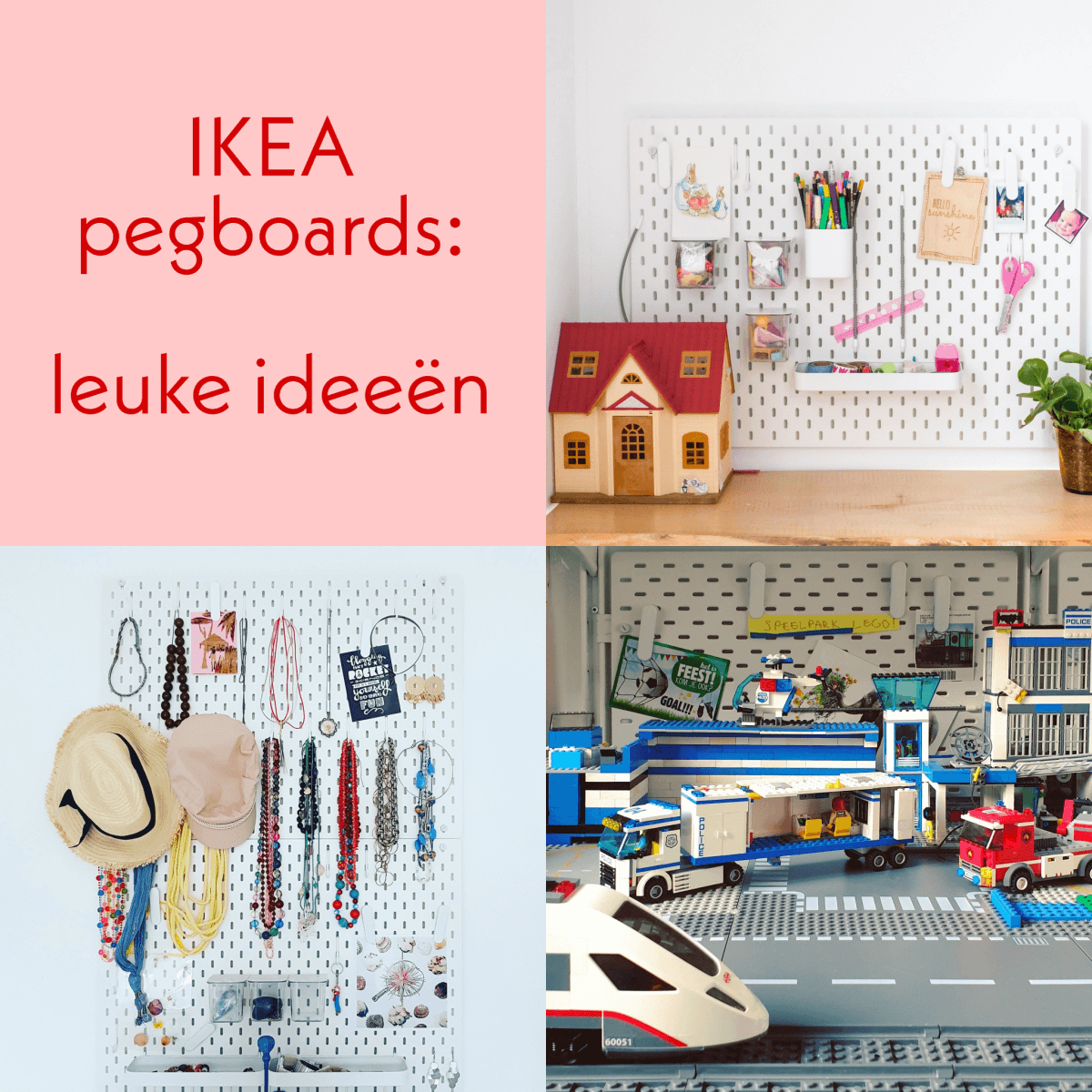 Ikea heeft een hele gave én praktische collectie pegboards genaamd SKÅDIS. Handig om allerlei ruimtes in een huis vol kinderspullen opgeruimd te houden. Wij hebben deze prikborden op een aantal plekken in huis. Ik verzamel hier dus leuke ideeën om ze te gebruiken.
