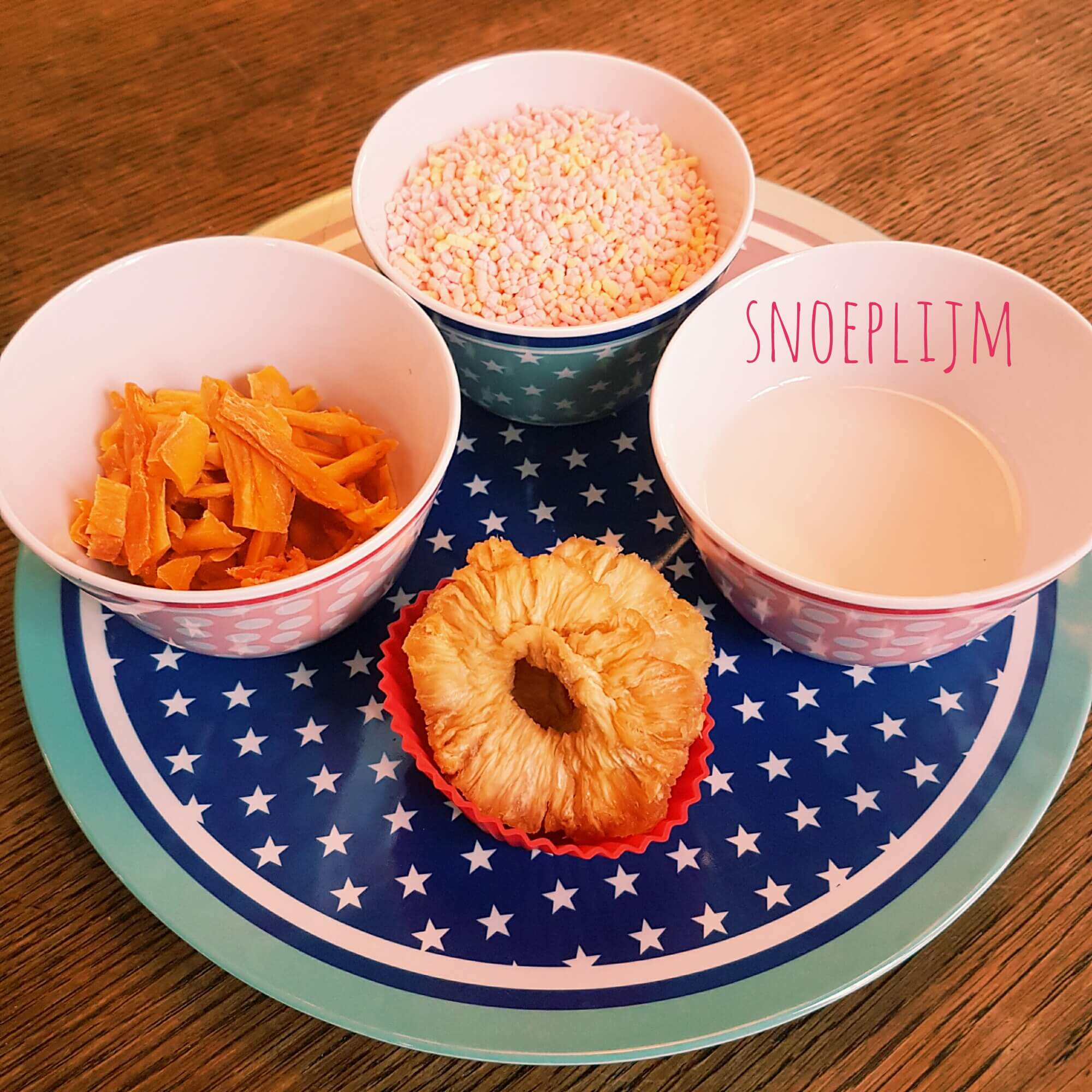Vervolgens kun je de koekjes versieren met wat de kids lekker vinden, of wat je toevallig in huis hebt. Wij gebruikten vruchtenhagel, gedroogde mango en gedroogde ananas. Chocolade hagel, stukjes fruit, mini spekjes, discodip, smarties en rozijntjes vinden veel kinderen ook leuk.