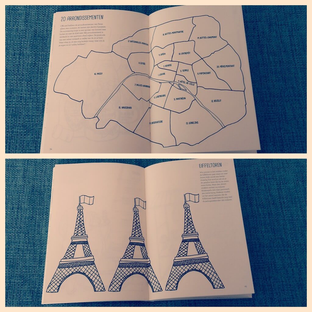 Daarnaast staat het boekje vol met bijzondere lijstjes, denk aan de films over Parijs, de mooiste theaters en alle metrohaltes in de stad. En natuurlijk allemaal vrolijk makende zwart wit illustraties over Parijs.