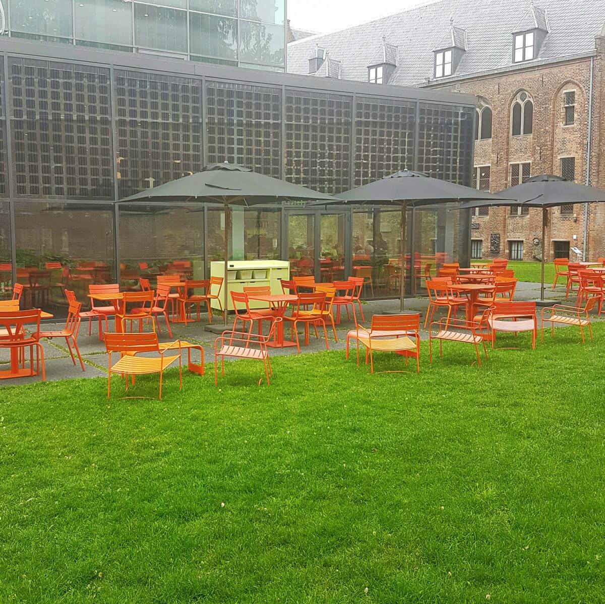 Het terras buiten zit op een afgesloten plein naast de Nicolaikerk, daar kunnen kinderen bij mooi weer dus heerlijk buiten spelen.