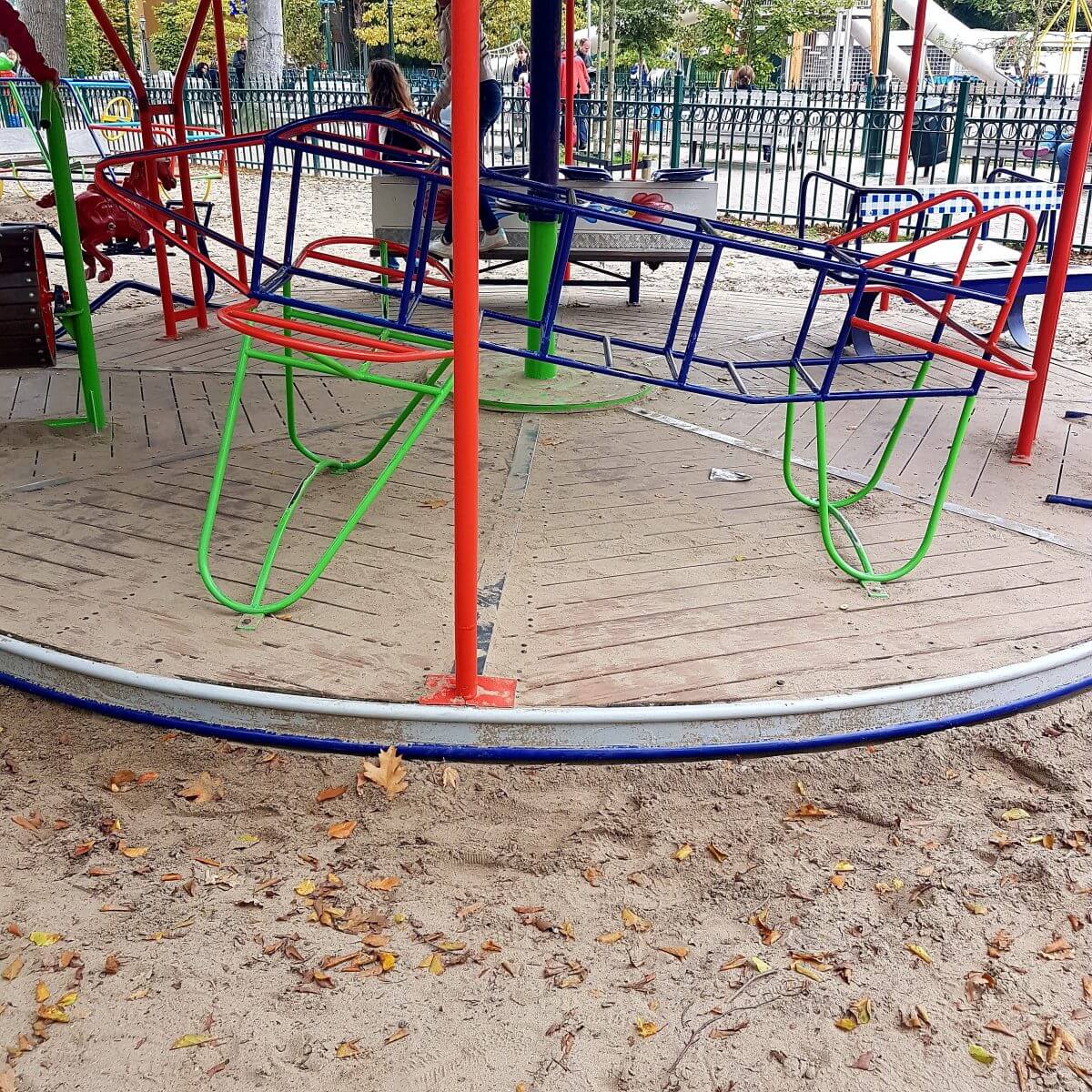 Vanuit het reuzenrad heb je ook uitzicht op de speeltuinen. Deze speeltuinen kan ik me nog goed herinneren van vroeger. Dat is niet zo gek, de draaimolen schijnt bijvoorbeeld te dateren uit 1935.