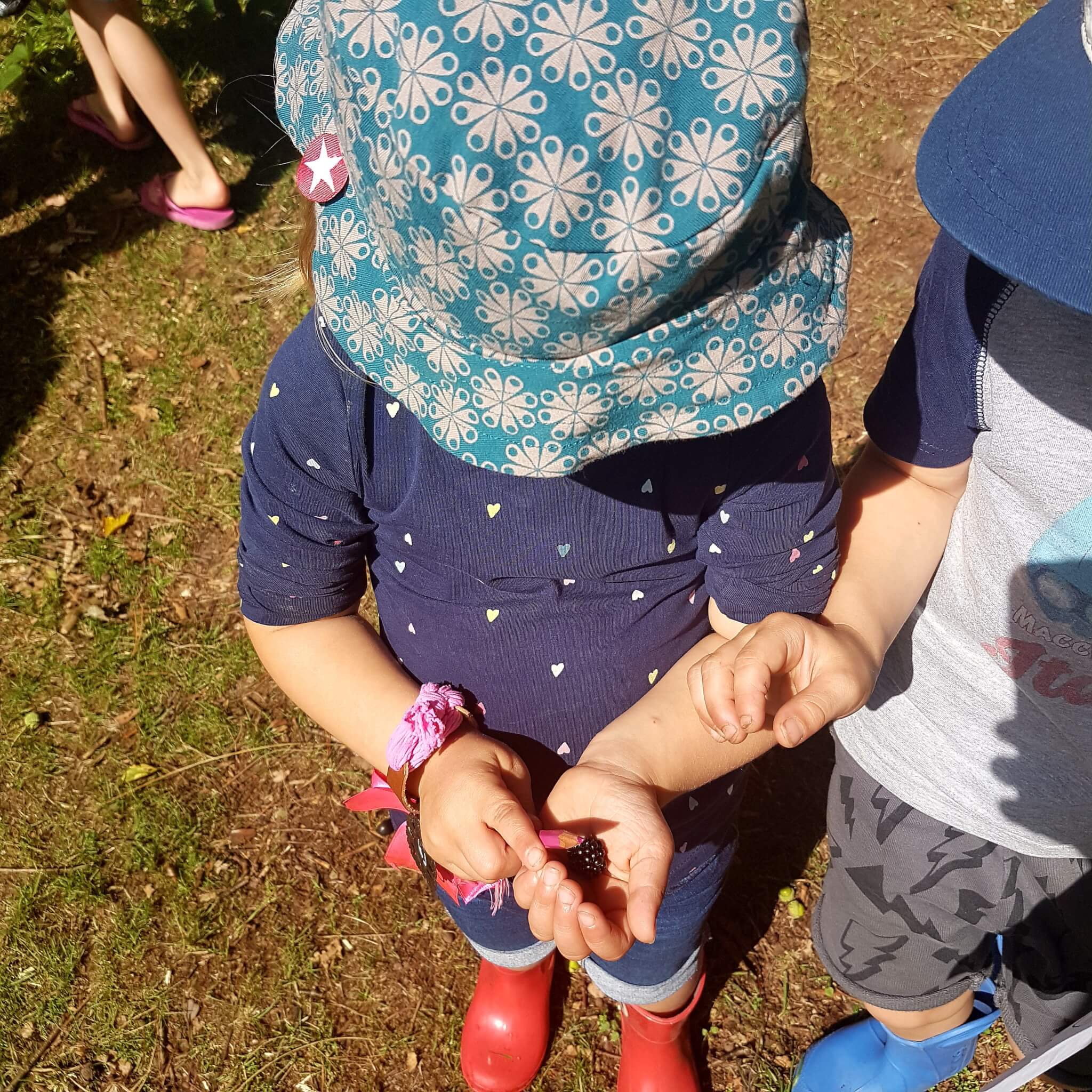 Gewapend met de zintuigen-speurtocht gingen we met de kids en hun campingvrienden het bos in. Voelen aan gladde en niet gladde boomstammen. Proeven van bramen. Even stilstaan en luisteren naar welke geluiden we horen. Kijken wat we allemaal zien. Alle geuren ruiken.